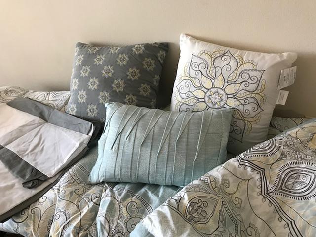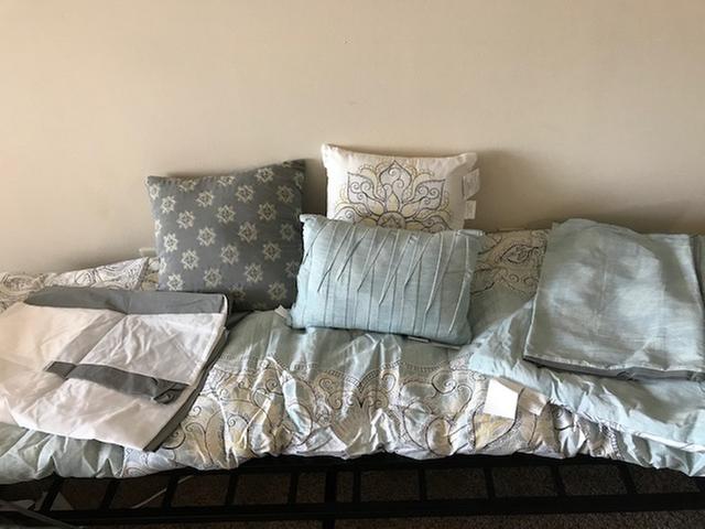 This comforter set is a great with all the nine items that are included. It is definitely well made with great quality of material. Looks very classy and yet modern/contemporary. It's comfortable, soft and not too heavy. so feels great when you're sleeping with it. I personally love this teal/light blue color. very vibrating. sham and cushions are very nice. has nice pattern, nicely sewn and decorated. makes my room look completely different (for better) now
