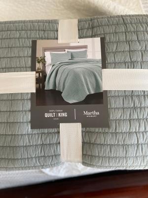 Color is off. Sage. Martha Stewart products are good quality. I have another one of her quilts. This one was on sale. The challenge is the color. It is not very bright, as in the picture. It is dull. But will keep due to sale price.