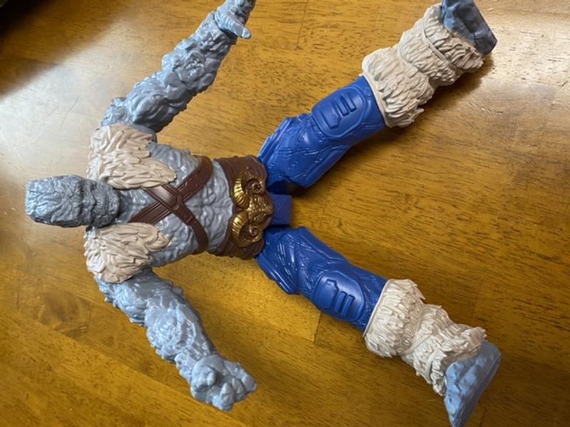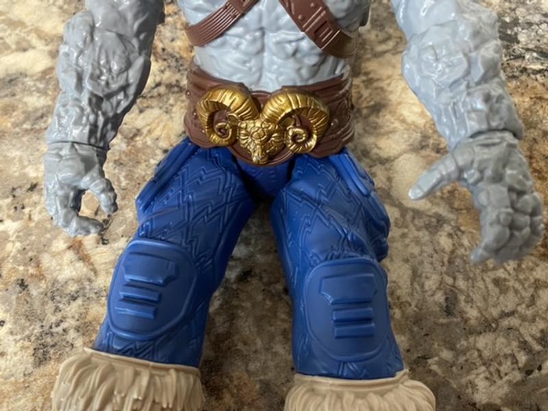 When my 3 yo grandson opened up this Marvel's Avengers Titan Hero Korg, he was thrilled beyond words. He knew more about Korg than I did. He played with this action together with his other Marvel Avengers action figures and he had a blast. Korg is not skimpy by any stretch of the imagination. He stands approximately 12 inches tall and has he does have articulating head, arms, legs. This action figure is textured and you can feel every nook and cranny from the top of his head all the way down to his the tips of boots. He is well made and more importantly, he is made to last. This is a big bad (good) toy for any Marvel Avengers collector and I highly recommend this toy.