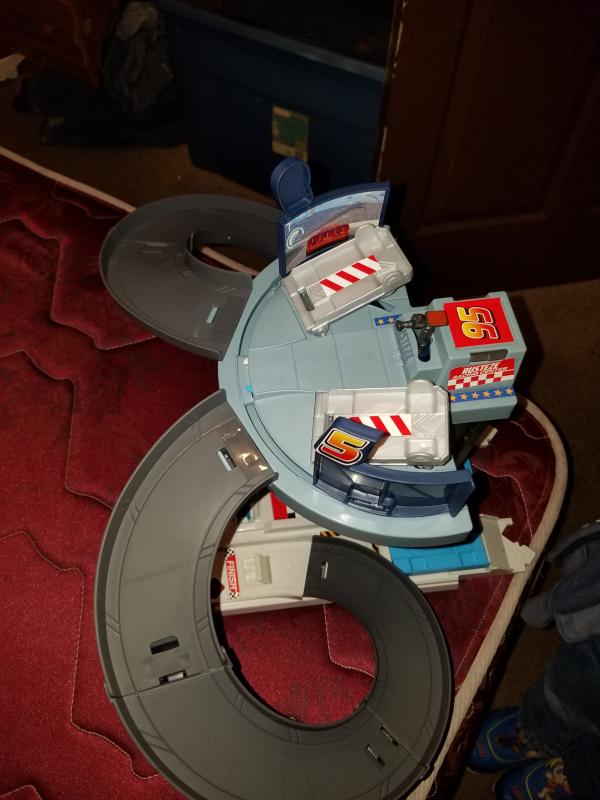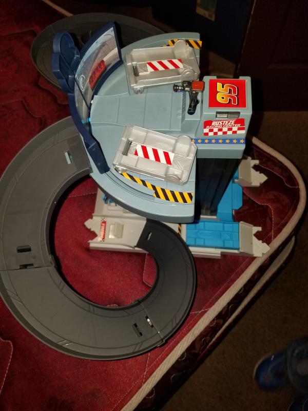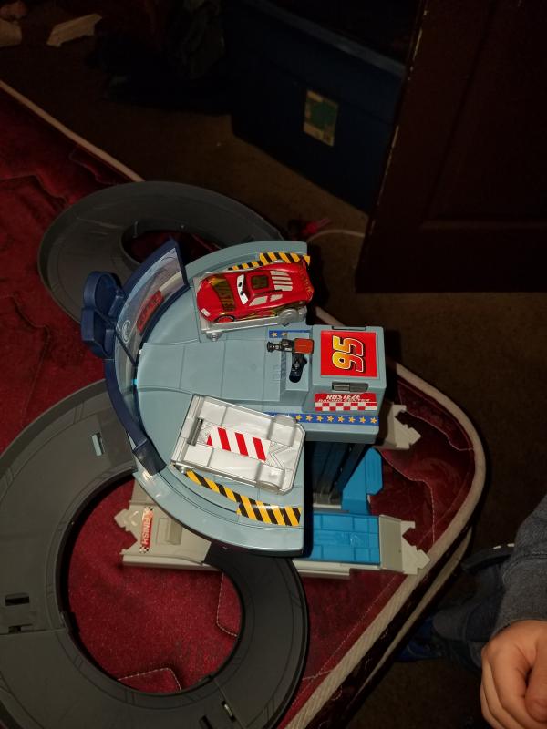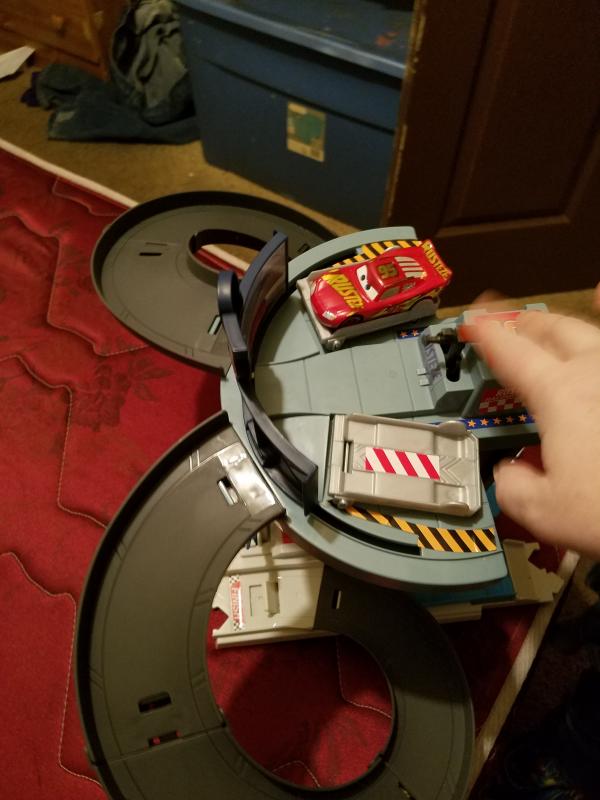 Disney and Pixar’s Cars Rust-Eze Racing Tower Race Car Track Set is very awesome! This track set is very easy to put together and set up for play. All of the pieces just snap together very easily. Surely most kids can even assemble it. It also has stickers included to put on it. It comes with a Lightning McQueen car and could have been even better if it included just one more car to race with. The quality of this track is very good. I love the fact that it connects right up to the other playset we have! This set keeps my son busy and entertained for long periods of time without getting bored.