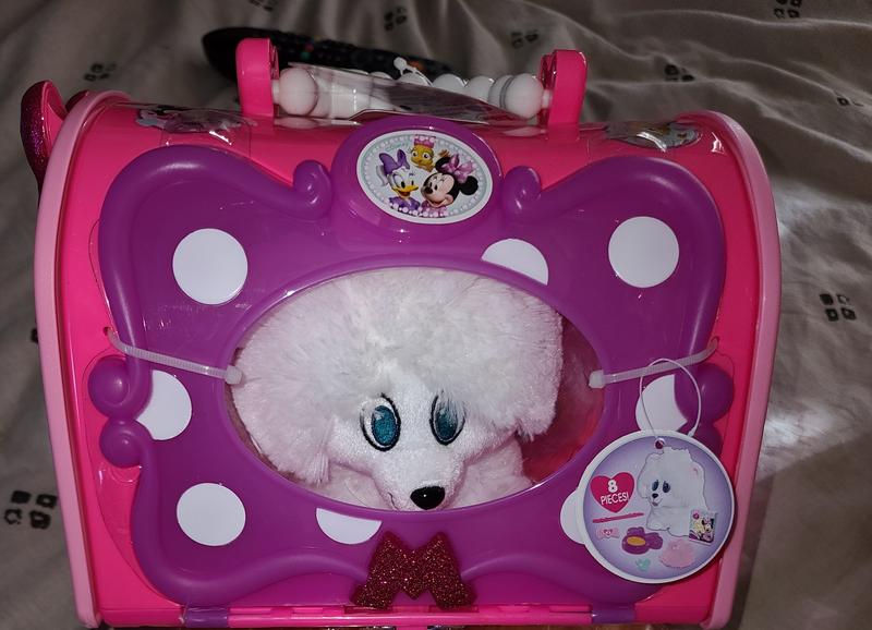 This playset was great for our little girls (ages, 4 and 7). The stuffed dog is very good quality and the carrier is also well built. It can open from the front or the side and when closed, it stays closed but is easy enough for the 4 year olds to open without much effort. The included extras make for some good roleplaying and since our kids want a puppy, this is good practice for them. It comes with a plastic minnie mouse head shaped bowl where the center section flips between doggie food and water. A nice solution to having a food and water bowl without including two separate pieces. There is a hand brush that works very well and is sturdy. A collar with two different bows to close it together. The only accessory We didn’t care for was the play dog treat box. It is made out of actual thin cardboard instead of plastic. I guess that makes it more realistic, but it also makes it look like part of the packaging so the first thing my kids did was tear it open to see what was inside. Obviously, there was nothing inside. Wish this would have also been plastic to match the other items in the set. Altogether, this was a hit with the target audience. Our daughters love it and it got more playtime than many other recent toys. That is a win in our house!
