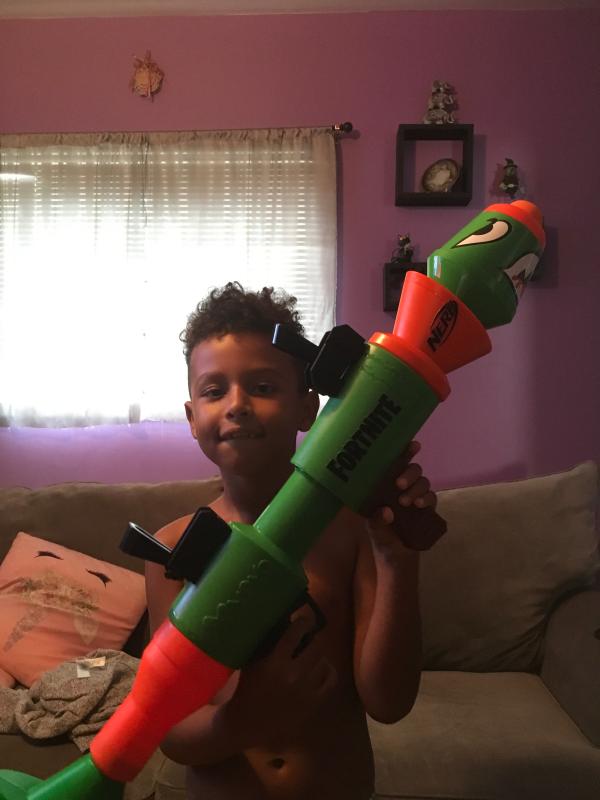 My son loves this Fortnight Nerf gun! He has a blast pretending that he's in the game and running from room to room aiming at me and his dad. It's easy to hold and to operate. He loves that it resembles an actual gun used in the game.
