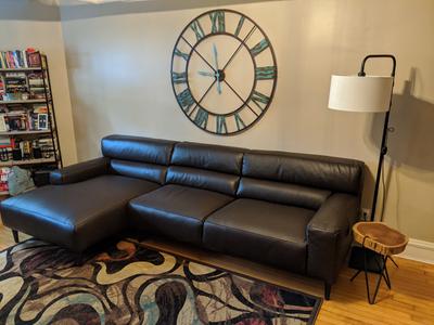 We purchased this sectional in gray and we are so pleased. This sofa is beautiful, the leather is soft and comfortable, super stylish.... all of the above. So happy with this purchase. The delivery was flawless. Macy's service was amazing. We received it and the two pieces were not aligning properly. I called Macy’s and they immediately scheduled delivery of a replacement brand new set. Totally exceeded our expectations. Can't go wrong with Macy's. Love it!!!