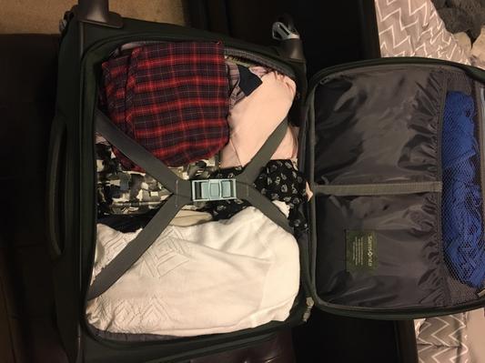 very light weight luggage. Love the color green. Very roomy. Several storage areas for items. Expanable.