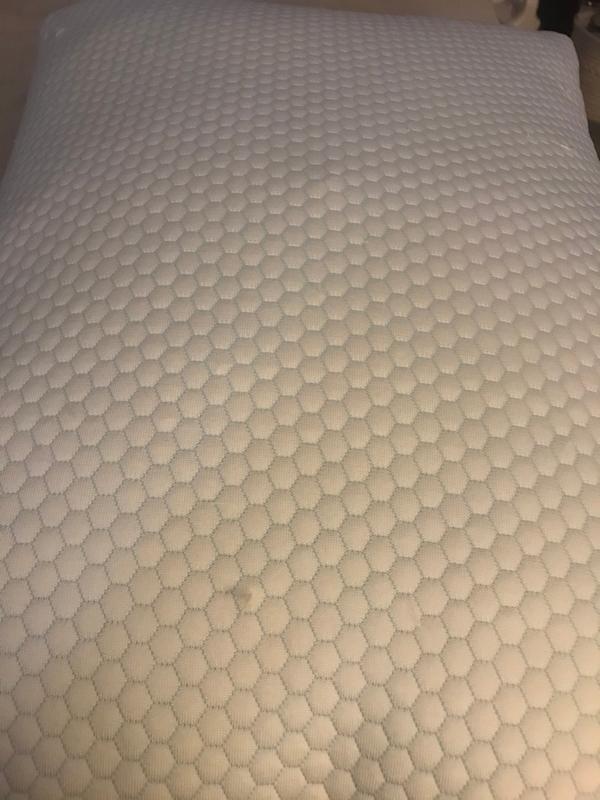 Very comfortable pillow. Love the cooling side of the pillow now that the warm nights have started. I was leery of a goose feather pillow as they usually have feathers coming out everywhere but no that is not the case with these pillows!! Very durably and nice material used.