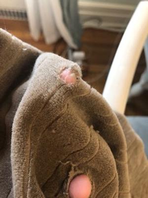 We love the cover! It was pretty easy to install. Color was less intense blue that color on website but that was OK, we liked this shade of blue much better. The cover is comfortable and is holding up well. So glad we chose a 1-piece over the other covers that have 4 pieces. Thanks to Sure Fit recliner cover, it looks like we have a new chair! Would highly recommend this product.