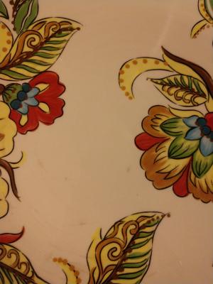Such a beautiful design.. sooo disappointed in the quality. With only myhusband and I, I thought these would last for years! As reviews state, very easily chipped,very weak glaze. They are NOT microwave or dishwasher safe. Extreme brown crazing on a dinner plate, which never showed up until food was put on it, and developed on the rest in a very short time. Such a waste of an absolutely stunning pattern on such an inferior product. Such a shame. Won't buy from Tabletops unlimited again!