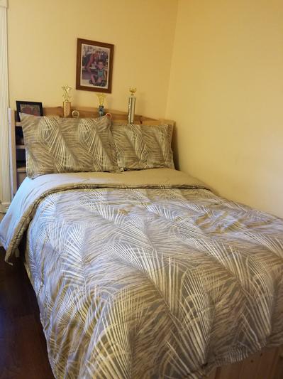 Simply beautiful bedding, love the way it makes the bedroom feel. Like I am on vacation in Hawaii. Colors are soft and relaxing. Great find.