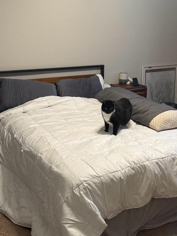 Within 30 seconds of putting this on our bed, my cat immediately claimed it. Is so soft and comfy to lay on. It’s heavy enough for a cold winters night, without being so warm you start sweating into it.