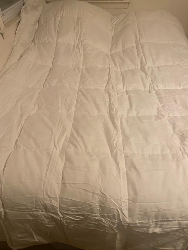 This Down Comforter is cozy all night long. It give enough warmth but you don't need to kick it off in the night.