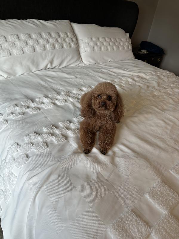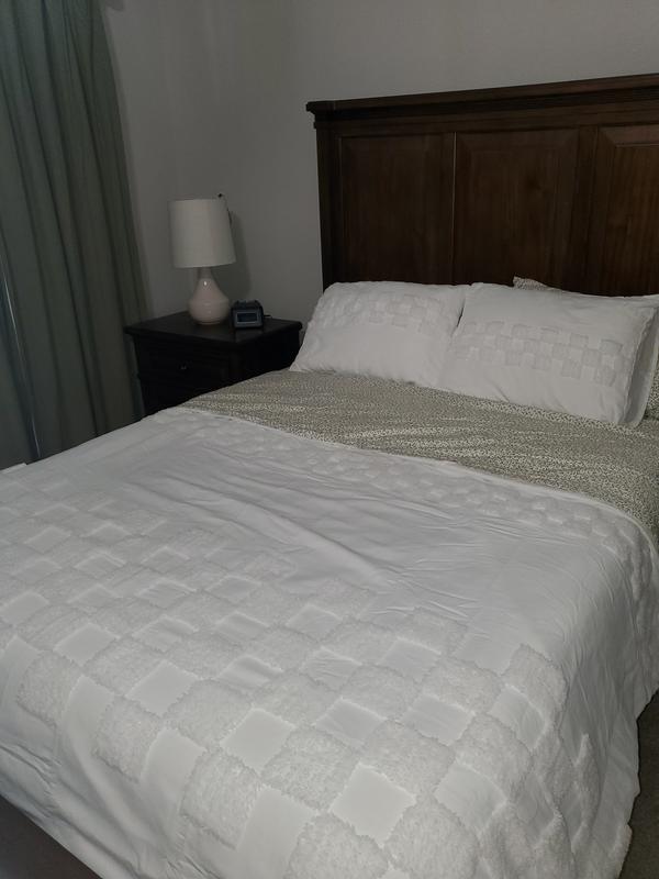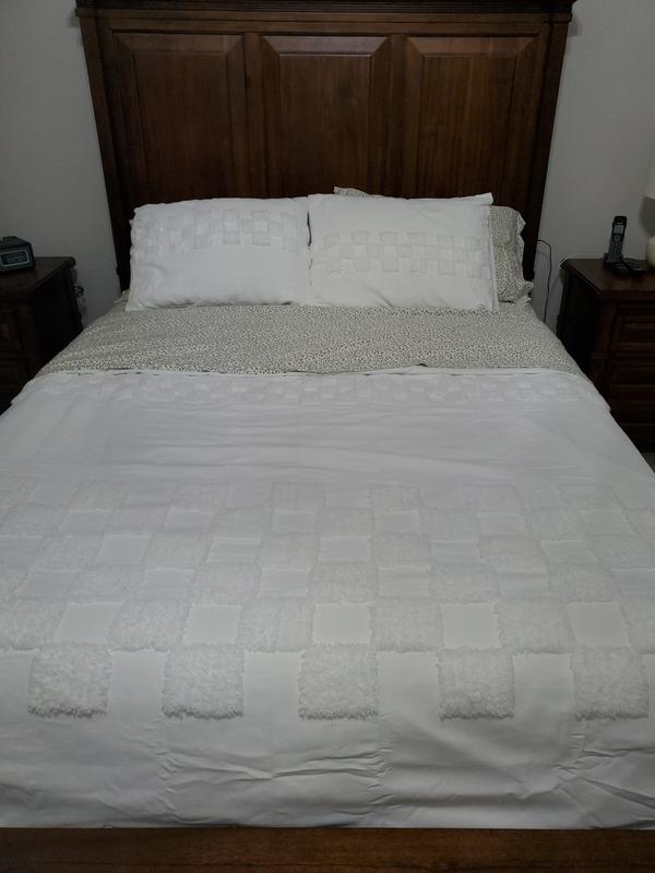 I was looking for a white, but not plain, bedding set for our master bedroom. I got this Urban Habitat Bennett 3 piece Chenille Duvet Cover set in size full/queen since our bed is queen size. I was a little worried the duvet cover might not be big enough to cover the entire mattress and have some hang over. But this is the perfect size. It has buttons across the edge to secure the duvet insert nicely. And the checked design on the pillow covers and duvet cover is nice and so soft. The duvet cover itself isn't very thick, but it has a nice weight so it could honestly be used with or without the insert. Our bedroom is warmer during summer, so I'm planning to use ours without the insert during the warmer months and with the insert for the cooler and colder months. The price point for this set is great and I'll definitely be recommending this Urban Habitat brand to my friends & family.