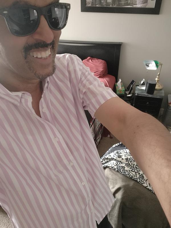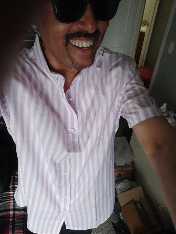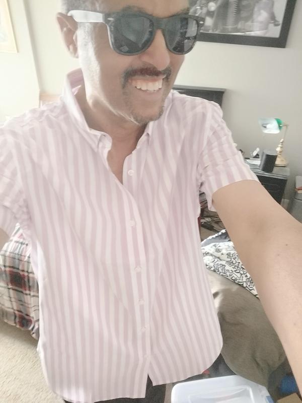 It's a nice shirt. I have big arms (muscle and otherwise LOL,) and the sleeves were too tight for me. But the look is great.