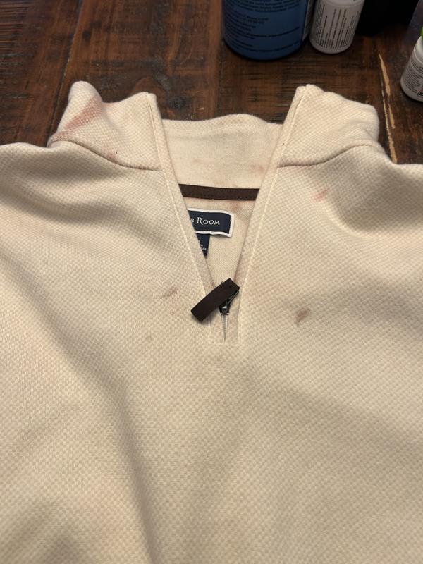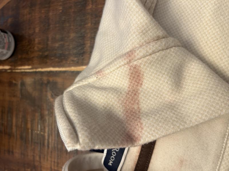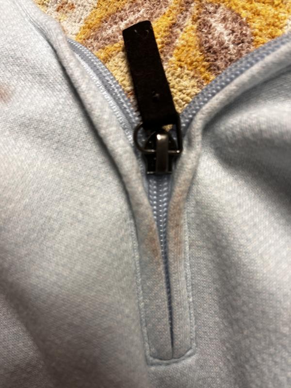 So disappointed! Loved the pullover but it was ruined the minute we washed it! Collar and zipper bled all over the shirt and could not get it out- the more it was washed the worse it become!