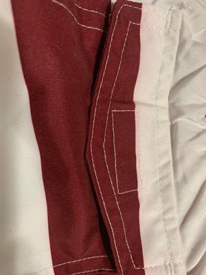 Decent trunks, especially for what I paid. Not sure I'd be so happy with full price. I bought both colors. I'm only 5'9" and like my swim trunks to show some quad; they're a hair longer than I like. Still above the knee. Couldn't find the inseam in the description but they're labeled 7" on the tag. From crotch to hem is a little over 6.5" The "navy" pair is lighter than navy and the "red" pair darker than red. Colors are pretty close to what's onscreen. You can see the red stripes through the white on the turn ups and hems on the red pair so they look like they're bleeding (shown on the back pocket flap). They aren't, you can just see the back layer of fabric through the front. It's not an issue on the "navy." Give them a try. I like the blue ones a little better.