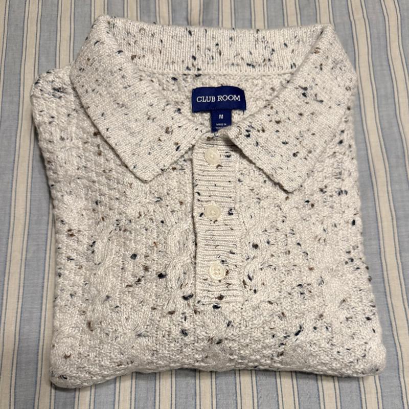 Handsome men’s sweater in a winter-white shade with subtle flecks of color, like snowflakes . The fabric is incredibly soft, and the textured cable design looks beautiful and well made . I’m a medium, and the fit is spot-on—comfortable enough to wear without an undershirt . I was lucky to snag it on sale, but honestly, it’s worth it at full price too. Check it out—you won’t be disappointed 😉.