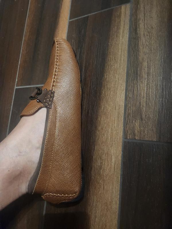 I love the fit and comfort of these shoes. I have the same style by Club Room in a gray plastic with ventilation holes in it like a stylish version of a Croc. They are my go to shoes for lounging around the house, wear with shorts and even exercise. The leather version looks a little plastic, not a rich look, but for the comfort and price is a good value.