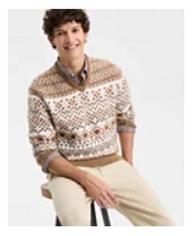 Club RoomMen's Northern Geo Fair Isle V-Neck Sweater, Macy's Exclusive