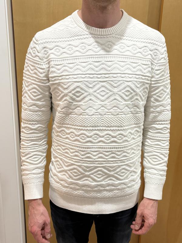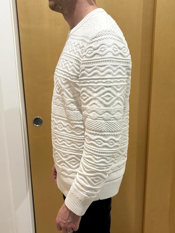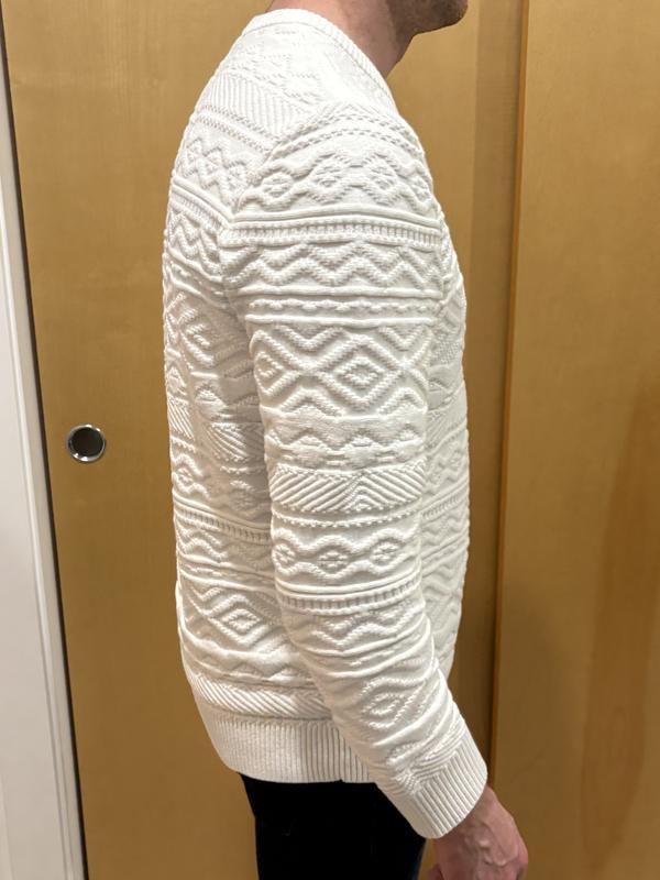 If you're looking for a great quality cable knit men's sweater, look no further! This is definitely a closet staple and can be worn for chillier autumn weather or it can be a part of a winter white look. Fits true to size.
