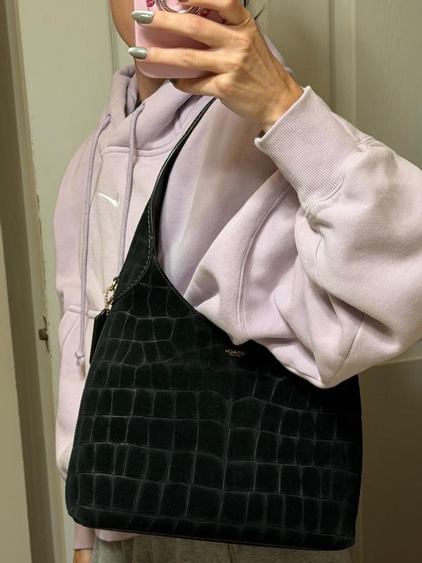 I’ve been using the Coach Brooklyn 28 for a while now, and it has quickly become my go-to everyday bag. It’s spacious without being bulky, with just the right amount of room to fit all my daily necessities—my wallet, car keys, hand lotion, charger, phone, and even my baby’s 8 oz milk bottle all fit comfortably and stay organized. The crocodile-embossed suede is absolutely stunning, giving the bag a chic, elevated look while still feeling soft and luxurious to the touch. I love the mix of the classic print with the suede texture—it’s versatile enough to complement both casual and more dressed-up outfits. Beyond looks, this bag is highly effective as an everyday carryall—practical, functional, and thoughtfully designed. It has no unnecessary scent, feels durable and well-made, and truly offers great value for the price. Overall, the Brooklyn 28 strikes the perfect balance between style and utility, making it a piece I know I’ll enjoy for years to come.