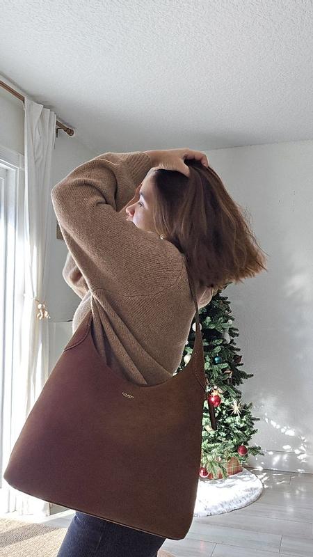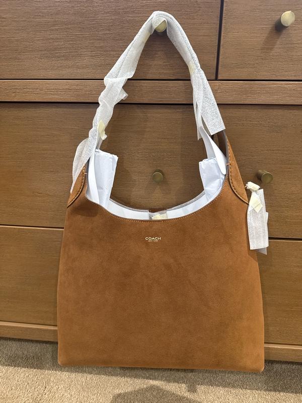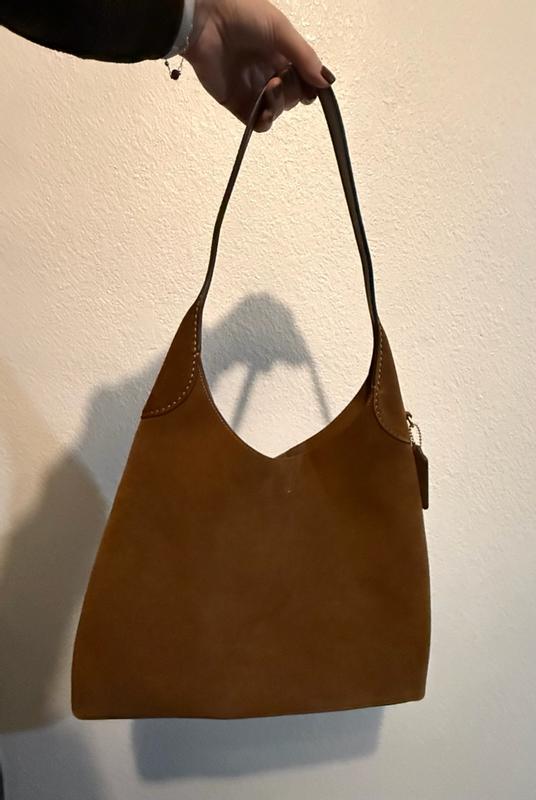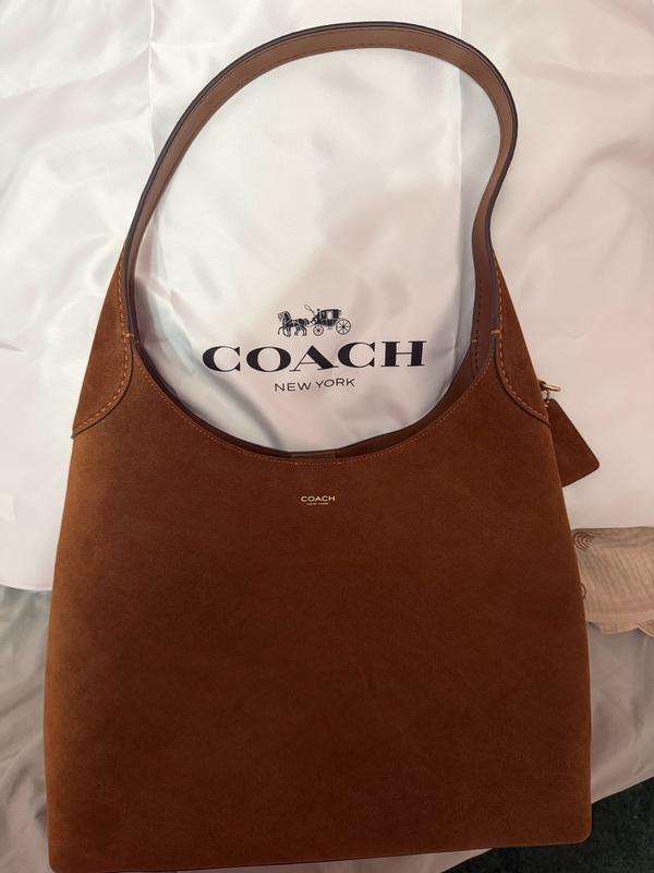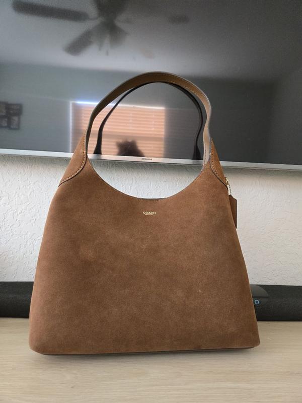 Stunning bag at a great price! The suede is gorgeous in a warm earthy brown will go with everything. The size is amazing for everyday wear, big enough for all my essentials, but not too bulky. Strap is comfortable. The inside has practical pockets to keep me organized and easy to grab what I need. No doubt a beautiful bag that I will have forever. Coach is absolutely crushing it! Suede seems durable, I have sprayed it with suede protector just to be sure it stays in amazing condition.