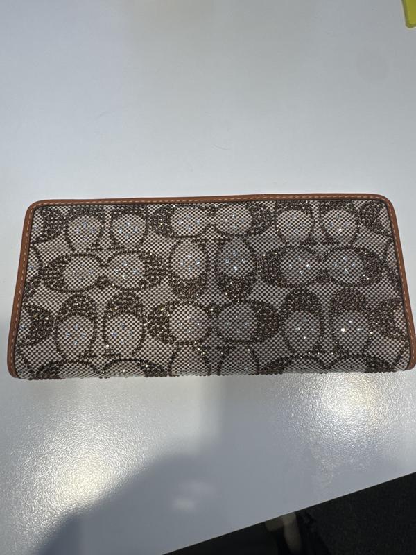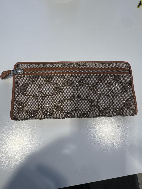 This wallet is so fabulous, the crystal accents add a beautiful sparkle. The wallet is slim and contains enough slots to hold IDs and credit cards, cash and change. I keep it in my purse, but when I don’t want to carry a purse I just grab the wallet. It fits into my coat pockets as it’s not too bulky