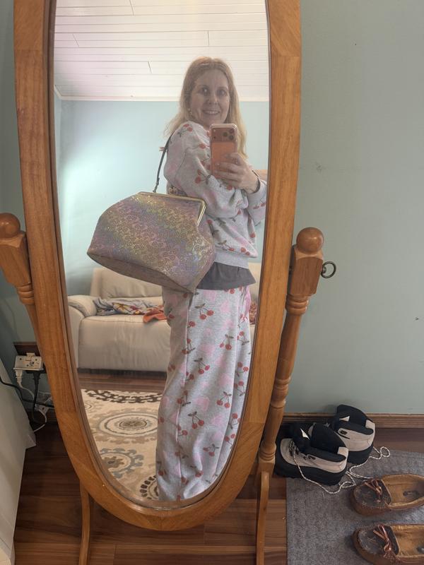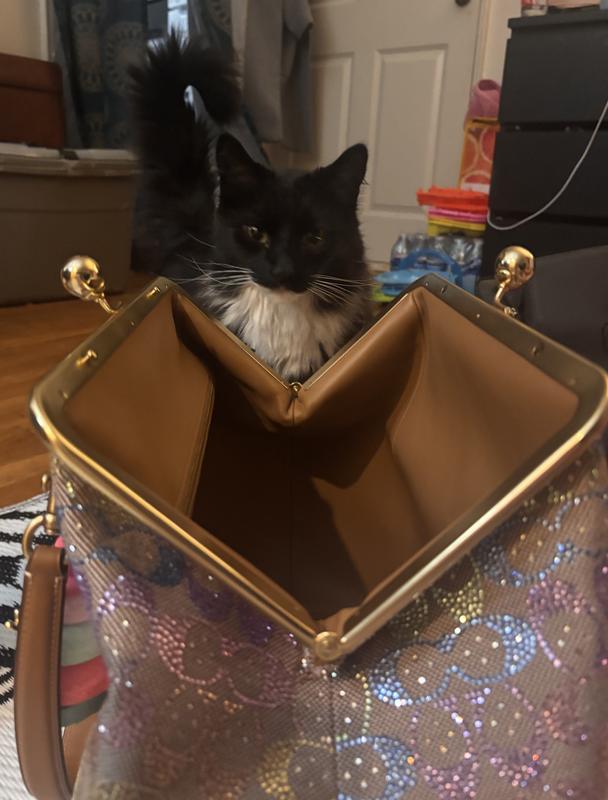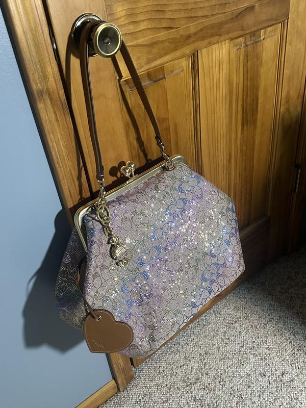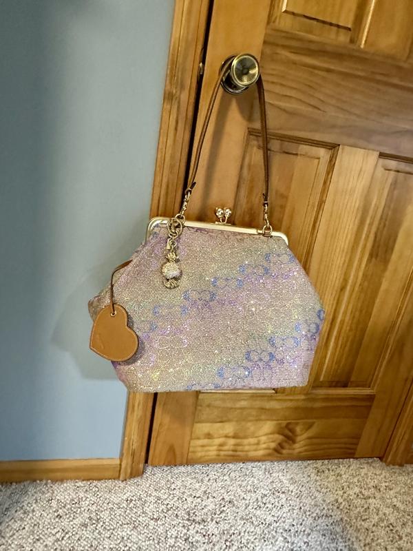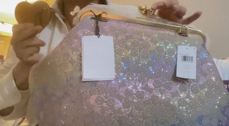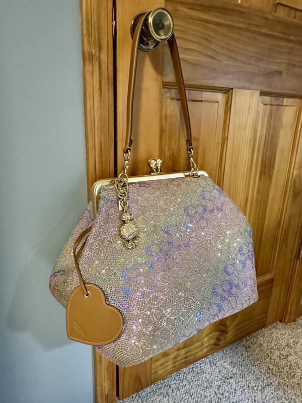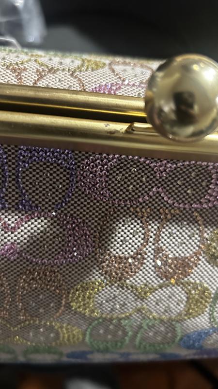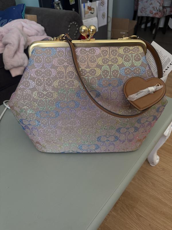 I’ve been looking for the signature brown crystal large Kisslock bag but it’s out of stock so I ordered the black one and I fell in love with that bag then I saw this rainbow crystal Kisslock and the photo don’t look to good to me but I said let me order it and if it doesn’t look good I’ll just return it and wait for the brown crystal one to come back in stock,. But when I received the bag I was in love the photos don’t capture the true beauty of this bag I love it , I prefer the large Kisslock bags. The only complaint I have is I don’t mind storing my leather one in the dust bag but for this crystal bag I prefer to store it in a Coach box and dust bag but unfortunately Macy don’t send the original black Coach box they just send plastic bag and dust bag in a Macy regular box, but I would like the Coach box to safely store my bags especially my crystal bag. If Macy has any suggestions on how I can acquire a Coach box please let me know. Don’t hesitate to buy this bag it’s gorgeous.