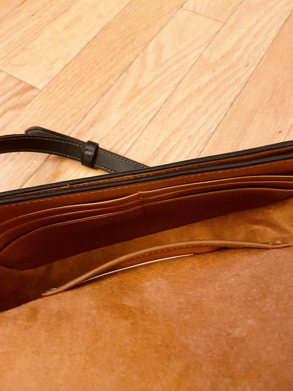 Was excited to find this bag on sale since I already had the small Wyn embossed wallet & I would have a matching set. Unfortunately there was an unusual amount of gluing oozing out from the bottom side. I returned it & decided not to try again.