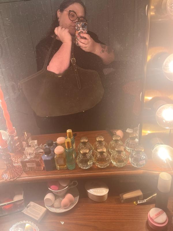 It is the most beautiful bag and the only one you need to complete your fall and winter look!!!! It’s a beautiful and soft suede in dark green and complements any outfit- casual to fancy. It is also the perfect size and lightweight to carry everything you need in a bag and I love that I can bring it to kids sports practice, or to shop or run errands, or a party. I’ve been using it for a month and it’s held up so well it looks brand new still! I’m in love with this bag :)