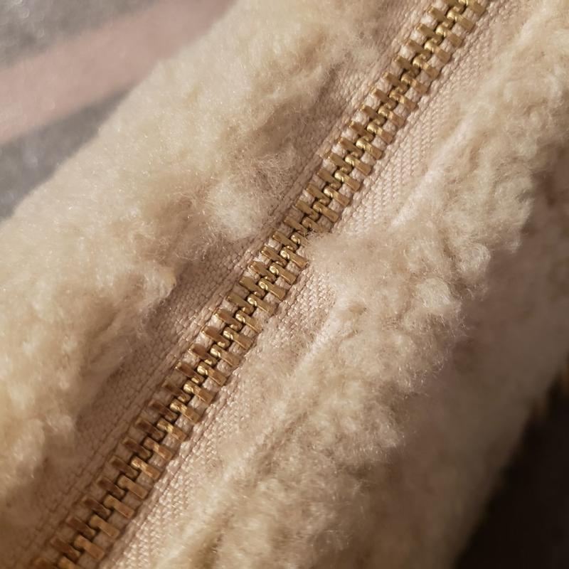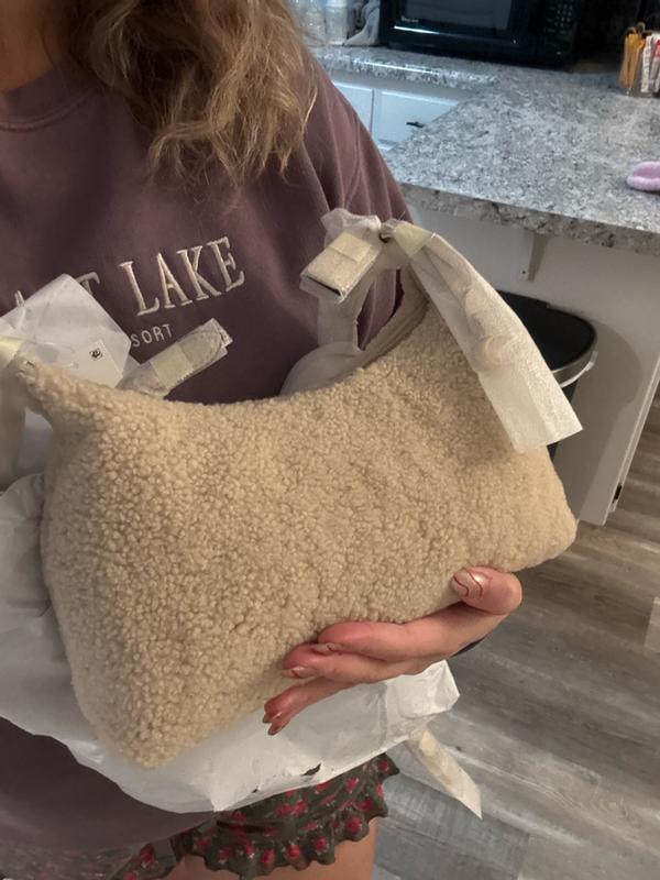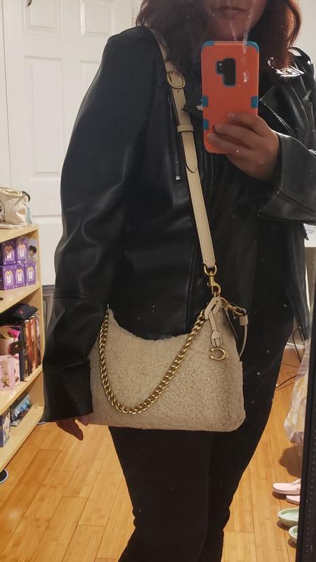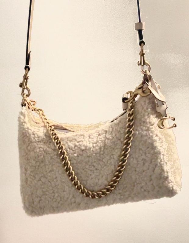 This bag is the perfect fall/winter bag! It's a cozy bag with plenty of room for a wallet, a small makeup bag, a planner etc. The sherling fabric is stunning for the season and compliments any outfit as a neutral. I love the chain accessory and have received so many compliments! The hardware is beautiful and I am so happy to have such a functional bag to add to my collection.