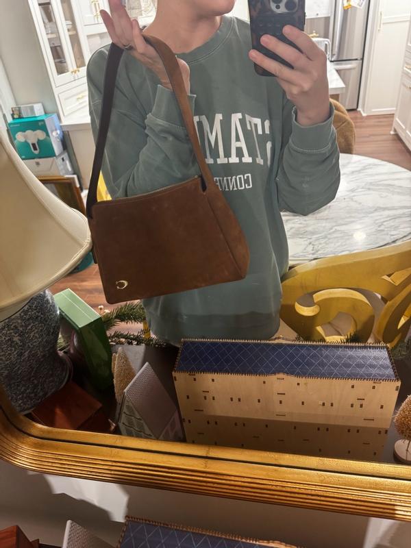 I absolutely love this purse! The size is perfect, I can fit so much and it’s not too big or bulky. The material is so nice and high quality, the suede on the outside and leather on the inside is perfect. It’s a beautiful color too! I love the style so much and would definitely recommend this bag to someone else. It’s one of my new go to bags!