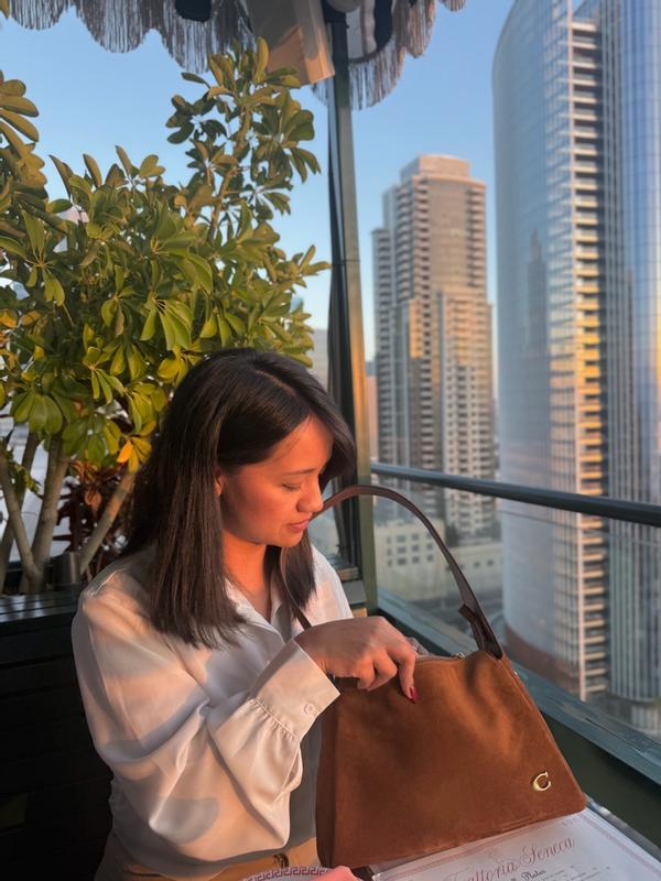 Perfect fall bag! The quality of Coach never disappoints.. the bag is trendy and the color of the suede is a beautiful camel brown. The bag is large enough to hold all your essentials and more! Super cute for casual days or even to dress it up. Love the quality and overall bag style. Can’t wait to put this in my rotation!