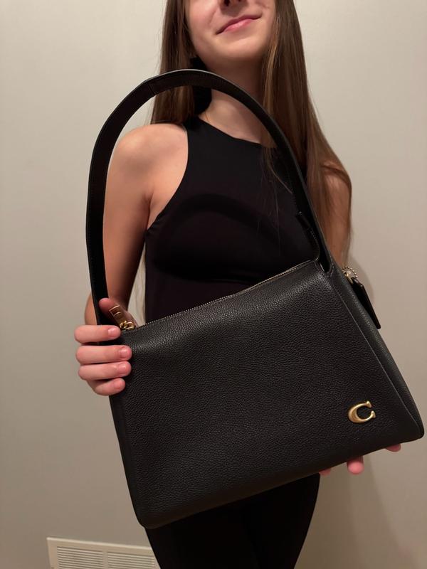 Ok what Í like about this Coach LOLA Shoulder Bag is the beautiful genuine full grain leather that is so soft and durable and also the purse is a nice size just enough to hold my necessary cosmetics and phone. It fits comfortably on my shoulder and is a nice purse for daily use.