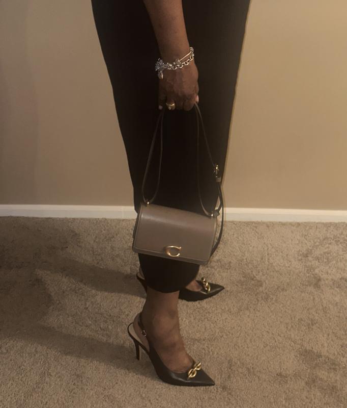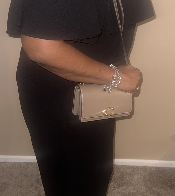 Coach! No review ever needed and with that being said this is absolutely the cutest most versatile small purse ever! You can use it as a clutch or a cross body bag. It has more room than you would ever think for a small bag.