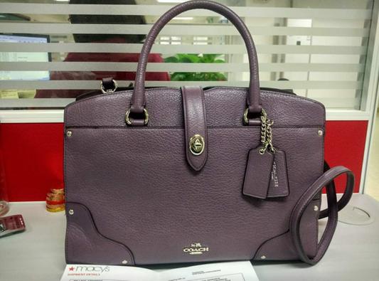 I ordered this Coach purse in plum online on the Black Friday special. It was such a great deal so I am glad that I waited to purchase it! It is a darker plum than the picture which I really like. It is the very soft but durable leather and has the little legs on the bottom to keep it flat when you put it down. It is the perfect size for me as it is not too big or too small in size yet it holds a lot. It has several compartments inside with a small zippered area and large zippered area for your wallet and an outside pocket for your keys. It holds your smartphone and personal items comfortably. It has handles and a long adjustable cross body strap so you have the option to use it how you see fit. Beautiful Purse!