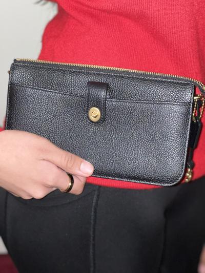 Okay small cross body bag to toss your phone, cash, cards and keys in. The coach tag fell off the second time I used the bag; it’s leather so hoping the bag itself holds up with use.