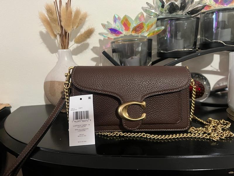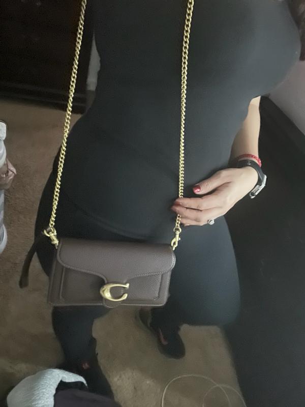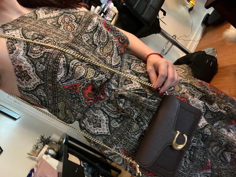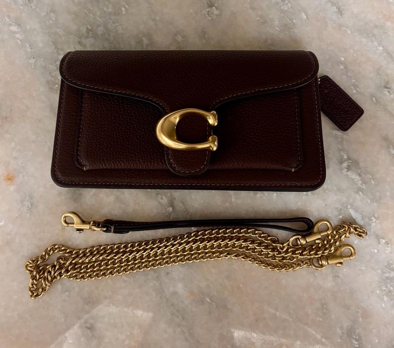 This crossbody chain bag looks very cute and stylish, but wish it was a little bit bigger though My phone doesn't really fit in it, but my small mirror, keys and lipstick fits. The material looks very good and the color dark brown looks elegant. Coach bags are very stylish and durable so I know this bag will last a while. Overall its a cute crossbody bag and will be my special occasions bag.
