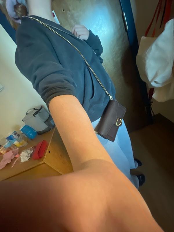This purse is so cute and the perfect size. It feels very well-made and I love how it comes with a wrist strap as well as a long chain to wear it over the shoulder.