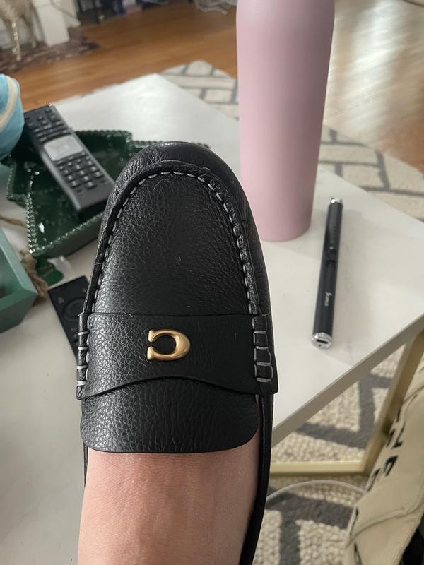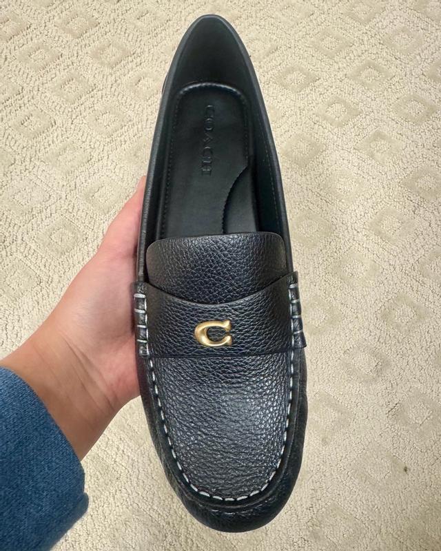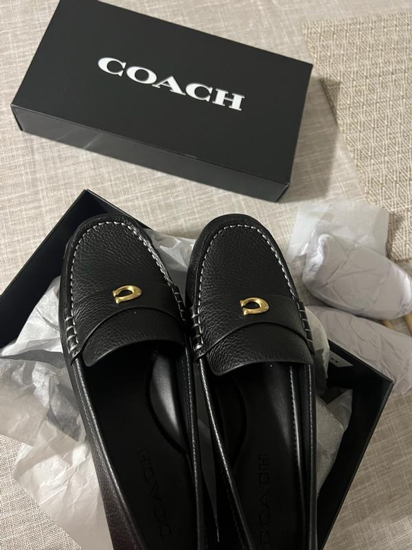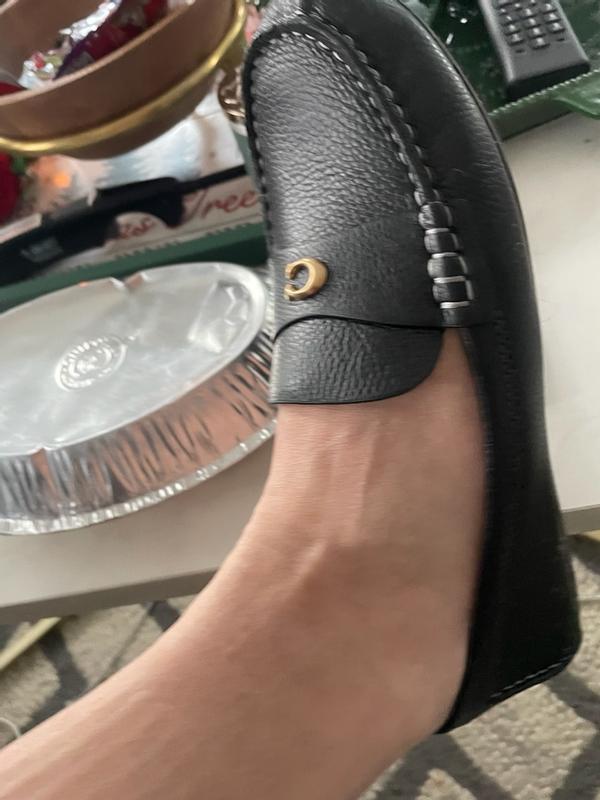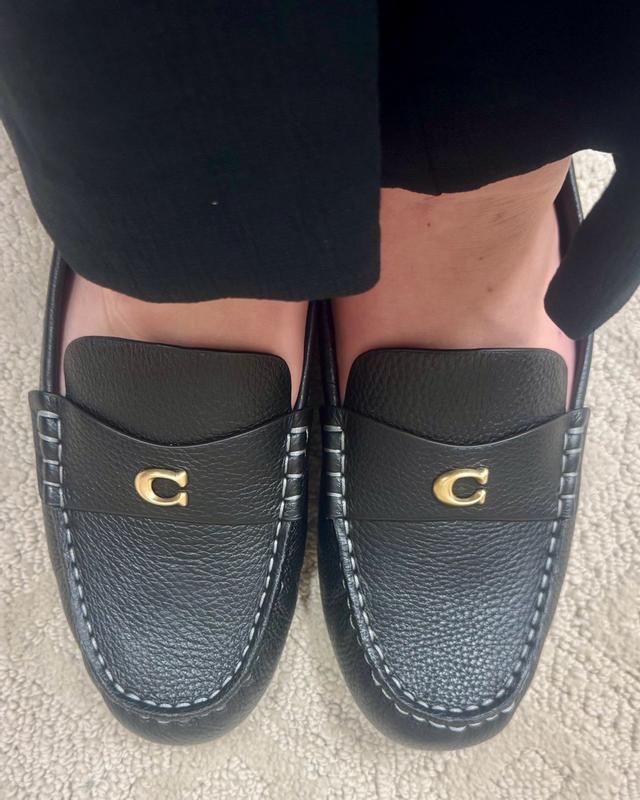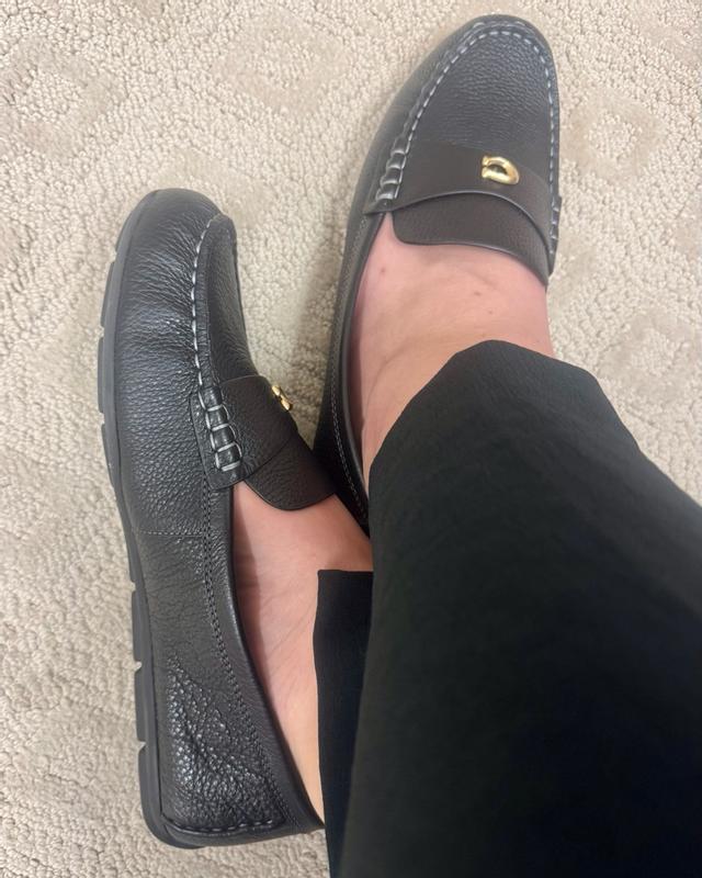 I am loving these loafers. I tend to wear an 8.5 but sized up to a 9 and I’m happy I did because they are a little narrow. Super comfortable and I love the black with gold Coach logo. These will be a staple in my work wardrobe. Great quality and look.