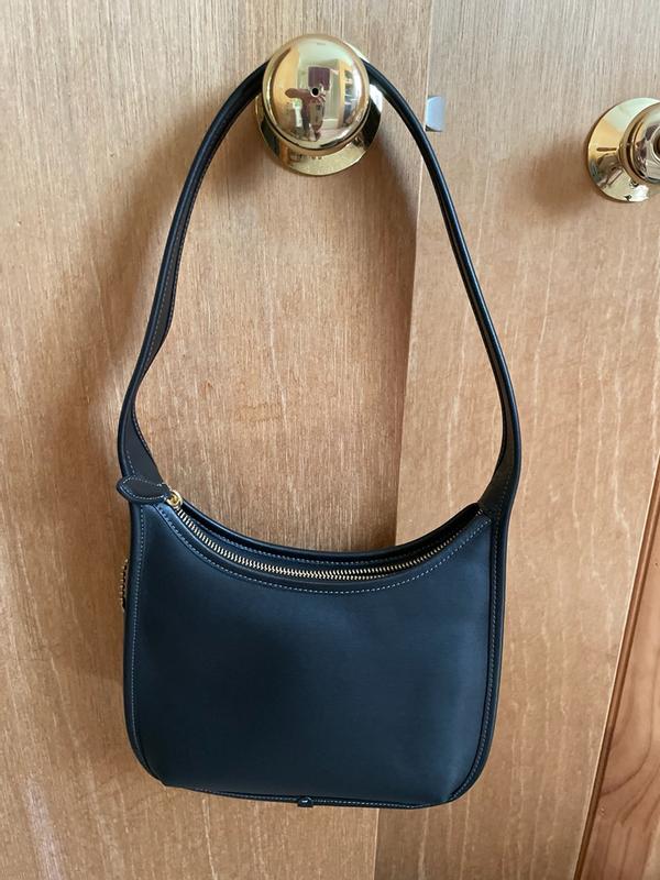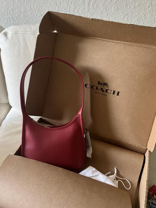 I love this purse so much. I’ve always wanted a larger Ergo bag, but when I saw this style that was very similar to the Ergo, I had to have it even though it’s a very small purse. I’m still able to fit a wallet, keys, sunglasses, and tiny pouch of makeup products in it. I love that when it has items in it, it stays on my shoulder well and fits perfect under my arm. It never gets heavy since you can’t put much in it. It’s the perfect errand running purse with a pop of color. The leather as usual is amazing, and the color of the bag has not transferred onto any of my clothes. 10/10 recommend it’s so classy looking and just timeless with no logos. Love it so much. The more I use it, the zip opening to the purse widens so it’s easier to get items in and out. Coach always brings me back because of how well the leather wears and becomes malleable to your everyday use.
