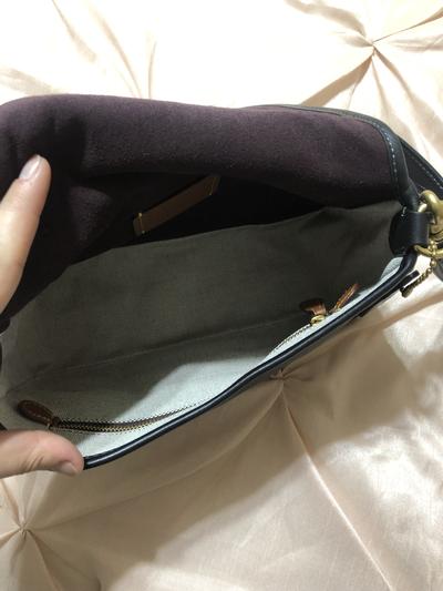 I bought this purse through macy’s since it was sold out on the coach website. sadly when it got here i notice a few scratches on the C and the interior was yellow not purple. i had to return :(