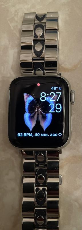 The strap was to big had to pay extra to get links took out. Then while putting it on the whole thing broke now it’s in the shop once again. I will not purchase again. It’s not easy to put on and off of Apple Watch.