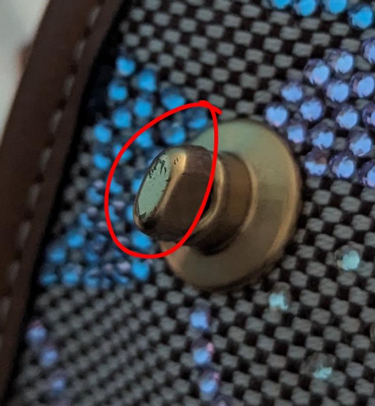Gorgeous bag and perfect size for me. But the hardware was scratched, some imperfections in leather on the charm, and one crystal was glued out of place on top of another one. Will be looking for another in perfect condition.
