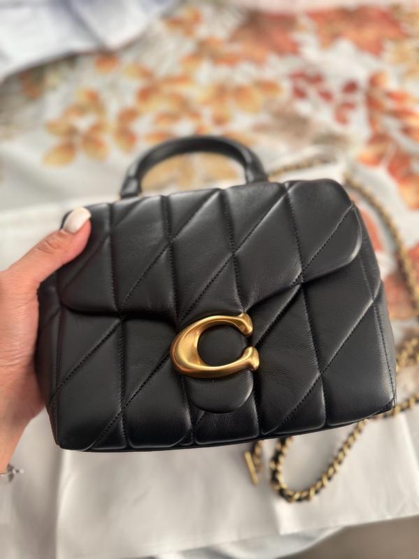 Love this little top handle coach purse: perfect for a night out! Love the color and the padding detail. I like that it just has a c for coach without saying the brand all over the purse. Has a nice strong feel with a decent amount of storage for the size and seems durable. Surprised by the price of the bag a little spendy for my normal purchase. Definitely recommend and thankful for the chance to review and use.