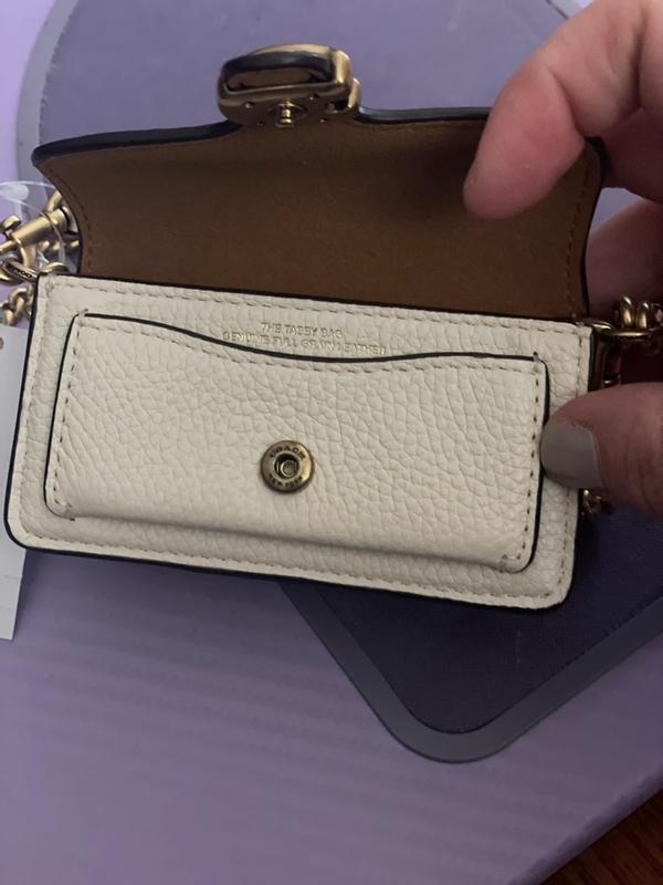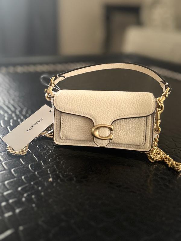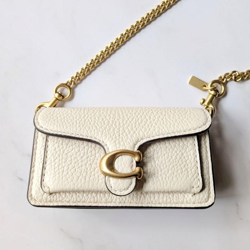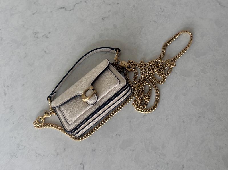 The tabby bag charm is soo cute and stylish. This would be perfect attached to a matching coach bag, or on its own holding all the most important info you would need to take with you. It comes with a gold chain that you can wear as a crossbody. It’s very cute and im thankful to own it.