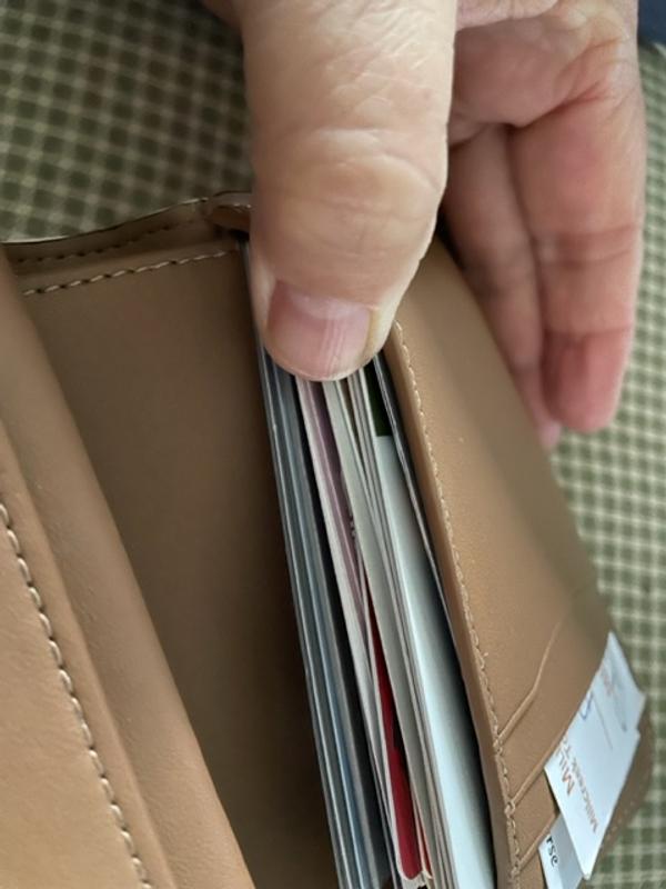 I love this wallet! Small enough to fit in a smaller purse, & big enough to hold everything I need! Love the bone color & feel, i just wish the snap was easier to close. It definitely has enough slots for all your cards.