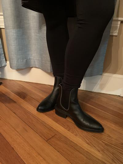 Nice leather boot but the run big and narrow toe. I Had to send them back for smaller size. It was a great buy and love the look with jeans.