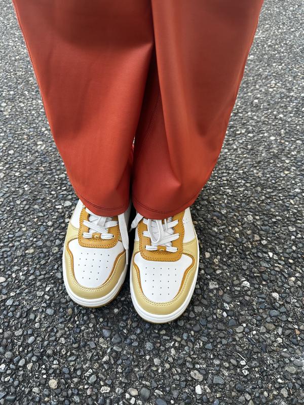 I purchased these shoes while they were on a sale. They are a great neutral colored shoe and I even wear this to the office and to church and it’s such a comfortable shoe. It has a nice squishy comfort feeling when you step into them. I would recommend them for someone looking for a fashionable brand name shoe that isn’t just a Nike or adidas , because Coach can elevate the look into feeling more dressy for work etc. You can pair it with jeans or a dress pants since it’s a great neutral.