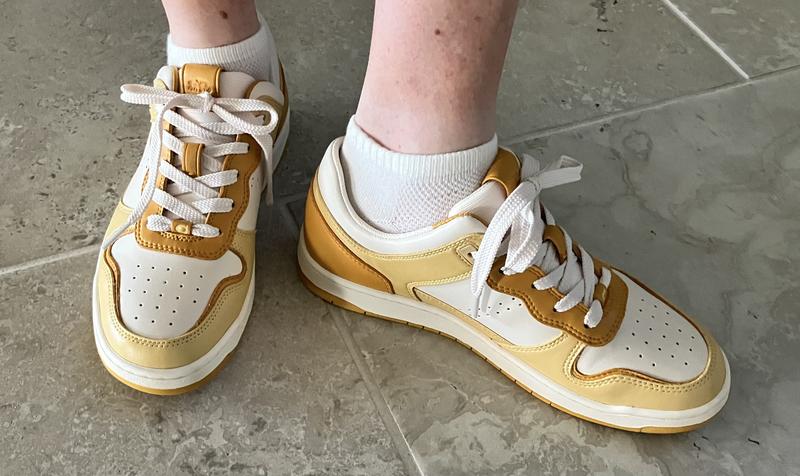 Comfortable, sleek shoe. Really liked them for 3 months. Unfortunately, the lettering on the side of the shoe has begun to fall off after casual wear. I know own a COAC shoe. Embarrassing. On top of that, COACH has made it difficult to streamline repair/replacement. Can’t recommend.