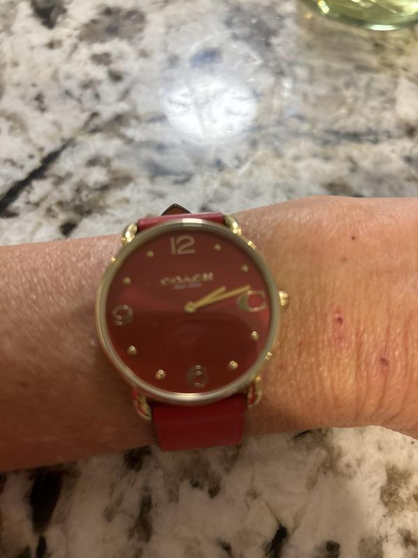 This watch is gorgeous. I own the black and gold and the red on red. I receive compliments all the time. I decided to start wearing a watch after a flight, years ago. I have an adorable Kate Spade, that I love, but can’t wait to buy more colors from this Coach collection!