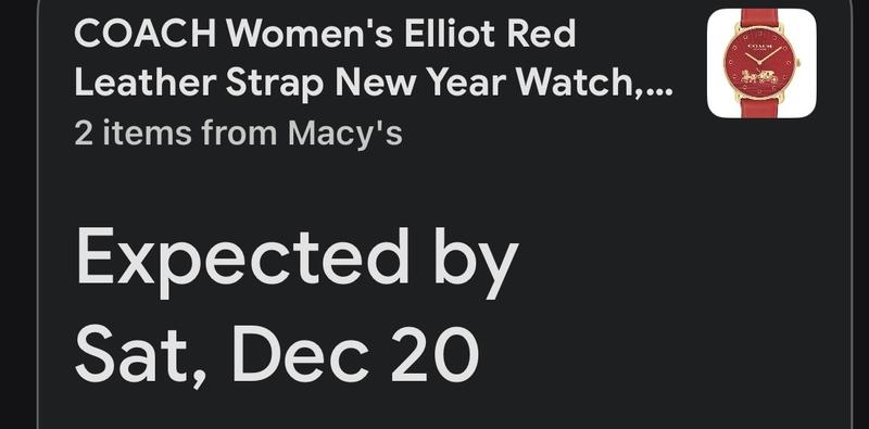 This product says it will be sent within 2-7 business days I have been waiting over a week for the product and has yet to arrive eta now says 2 weeks so when order from coach through macys proceed with caution on delivery day it will not be correct other Macy’s product will arrive on time